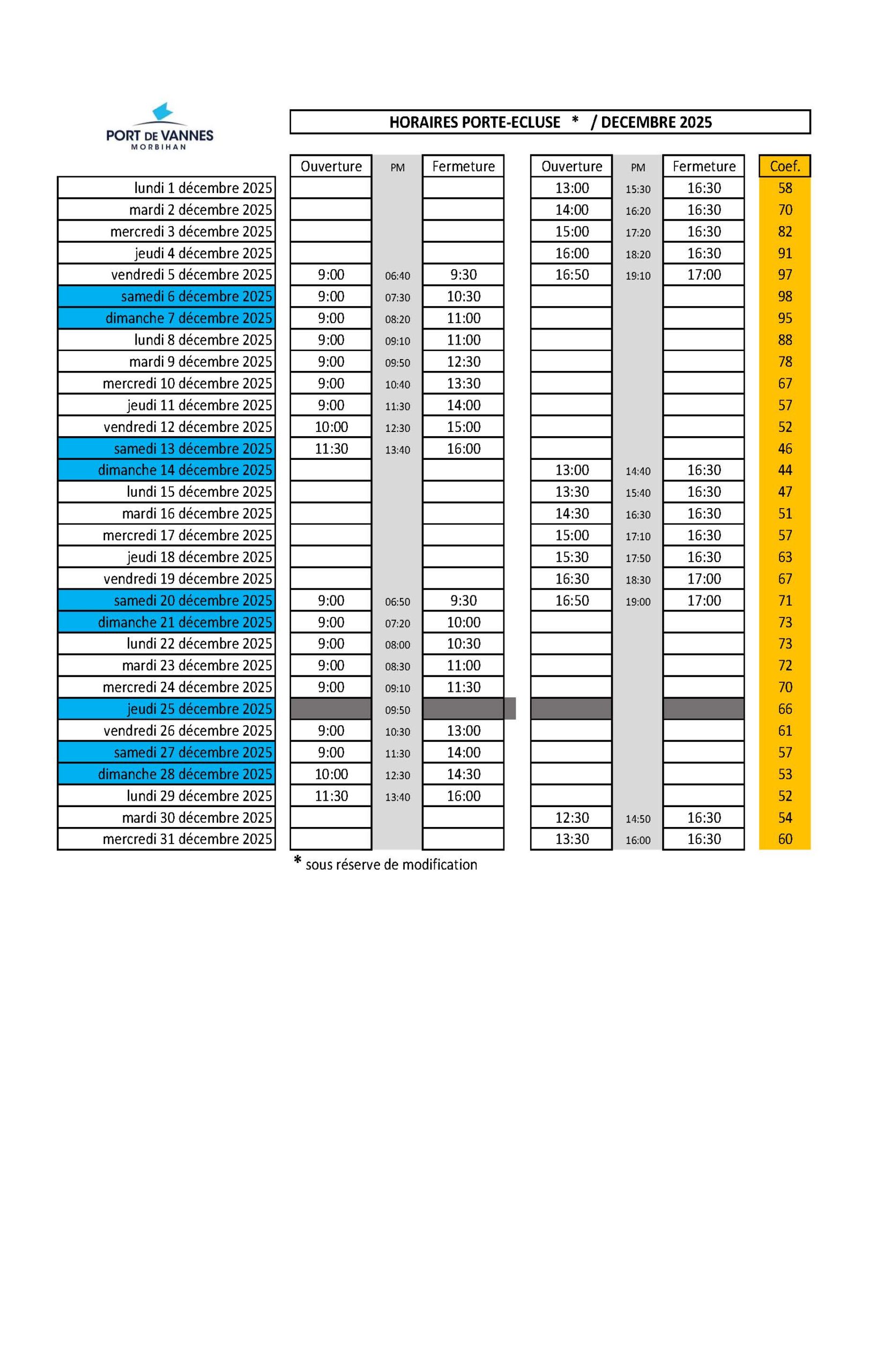 Modification exceptionnelle des horaires d’ouverture du bassin à flot du port de Vannes,